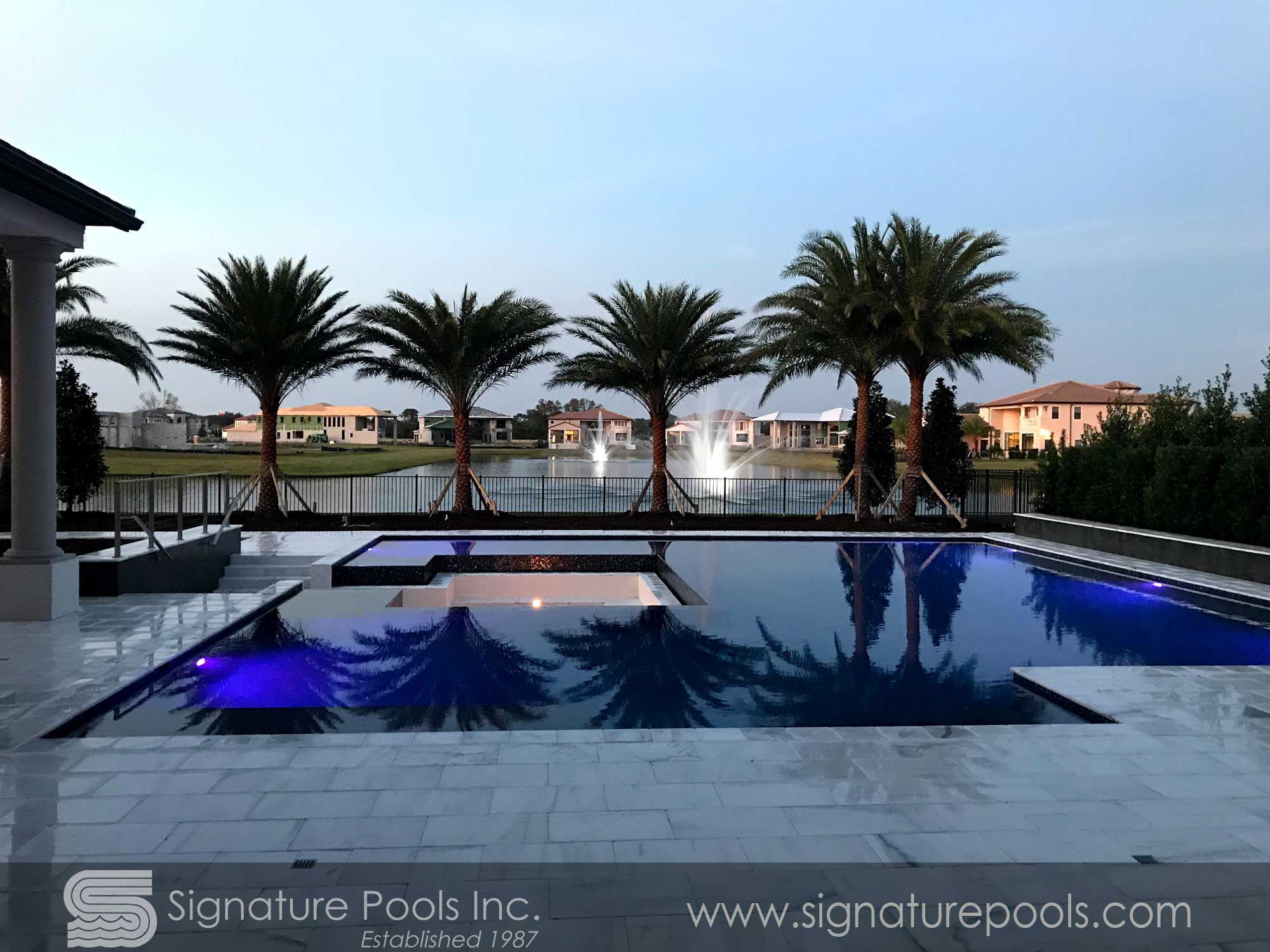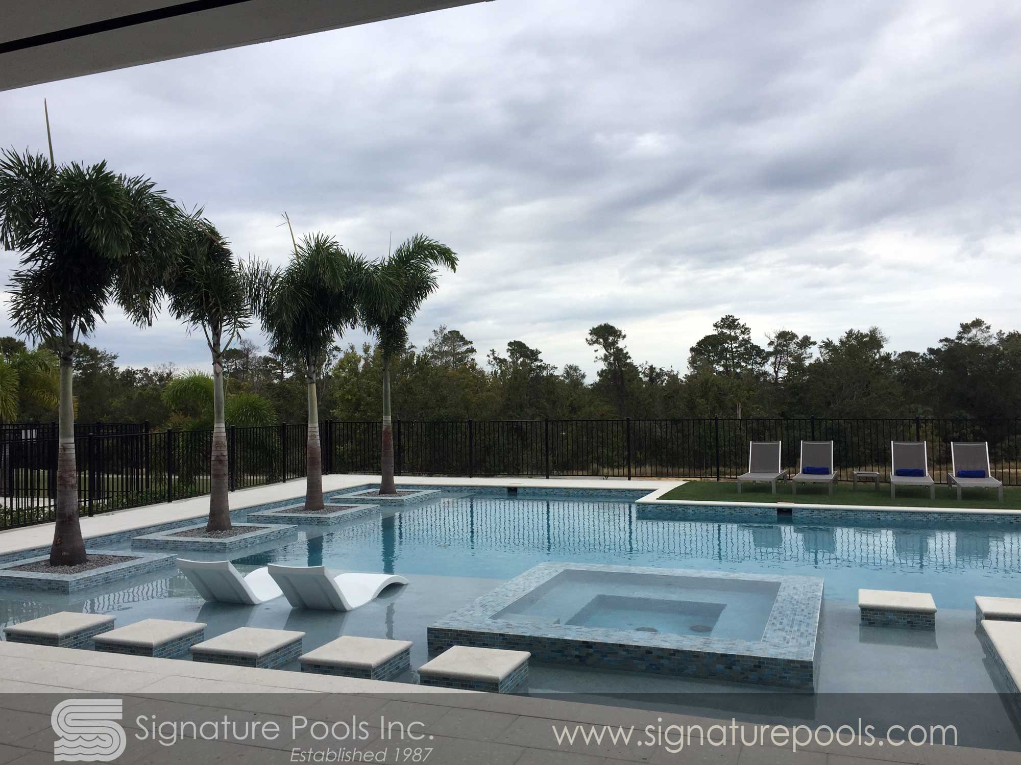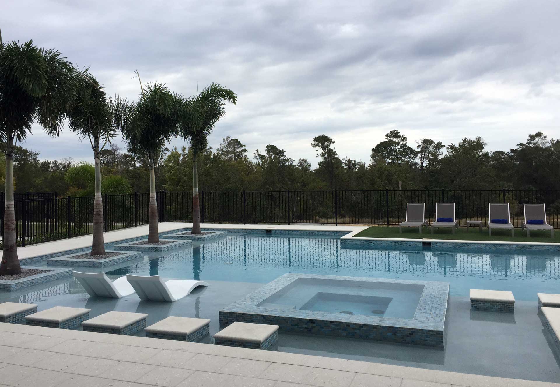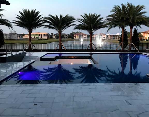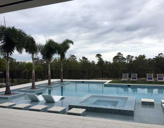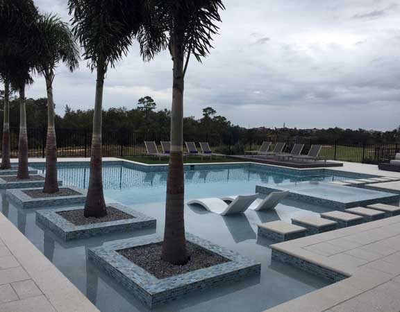 Linear Pool Design with Palm Planters Step Path