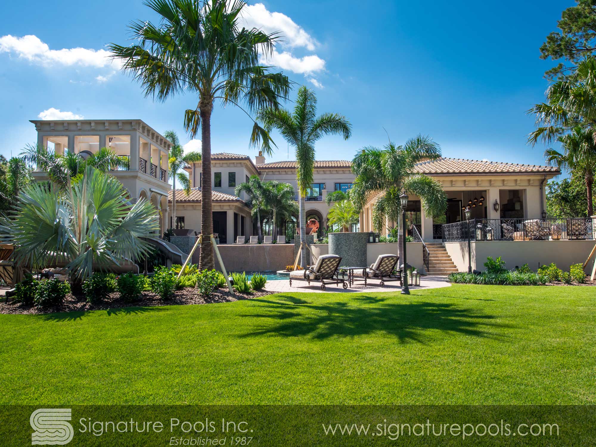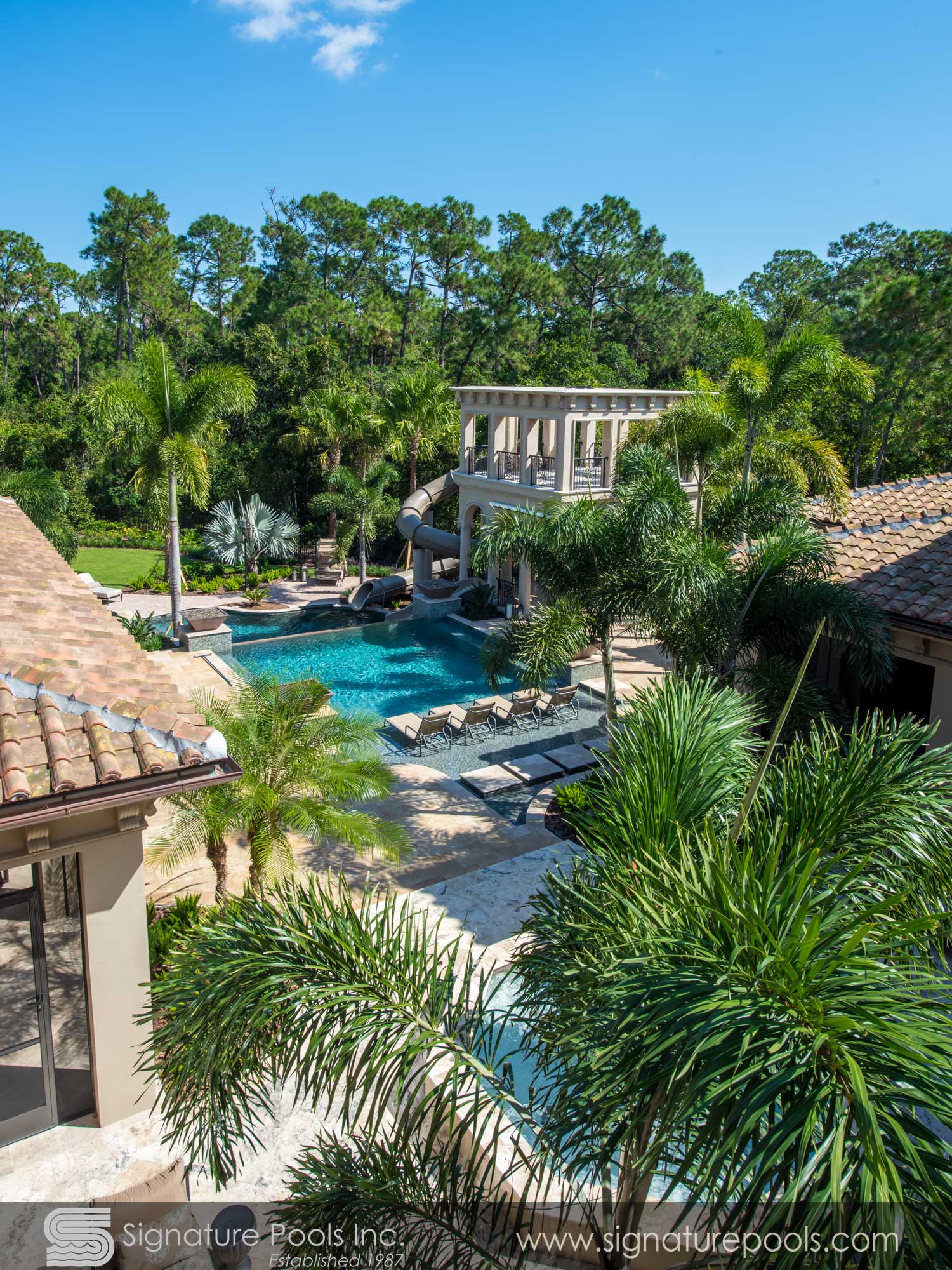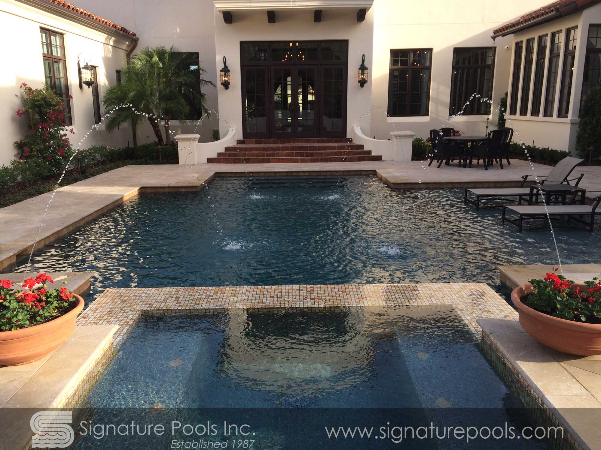 Linear Pool Design with Palm Planters Step Path