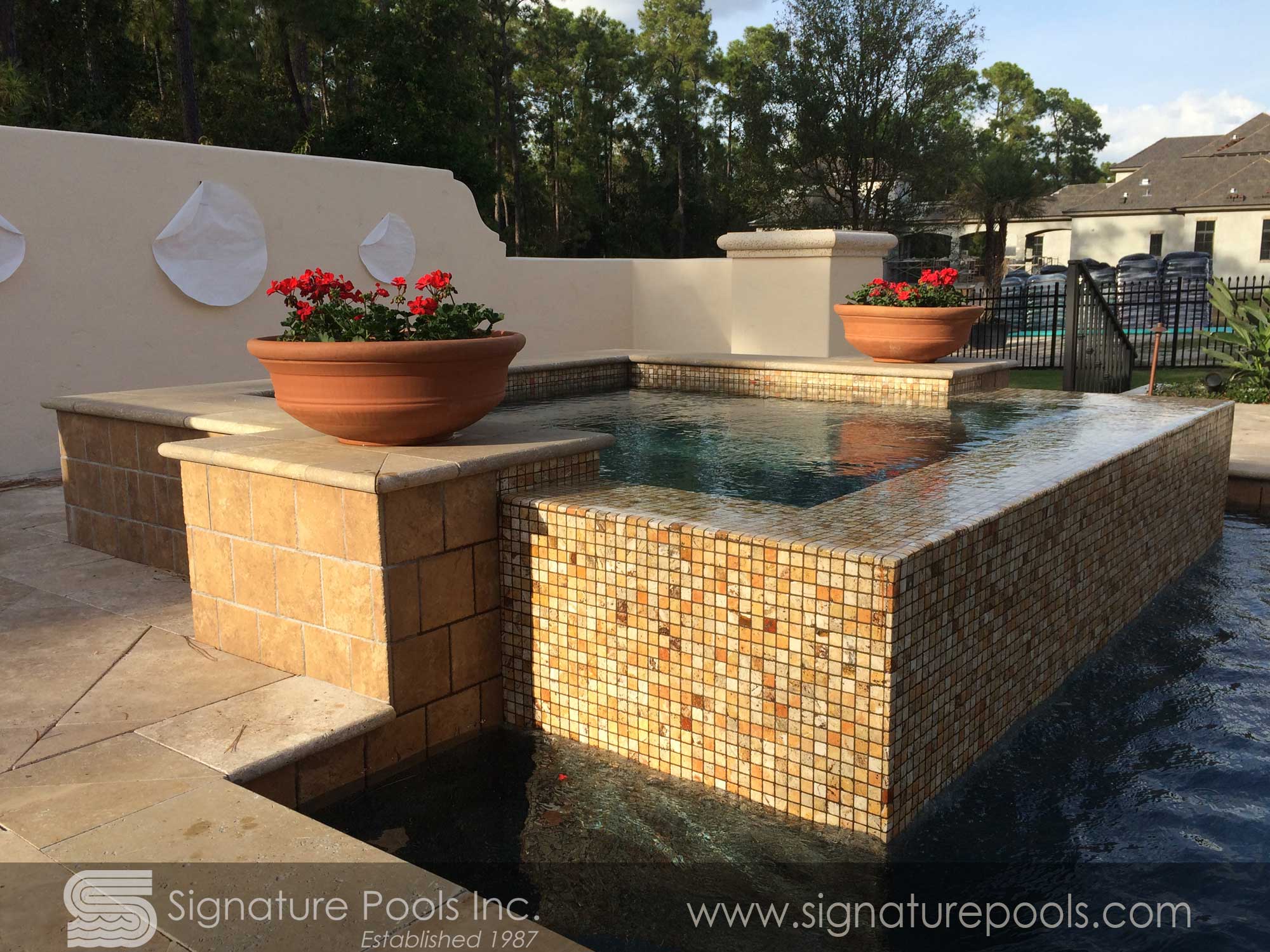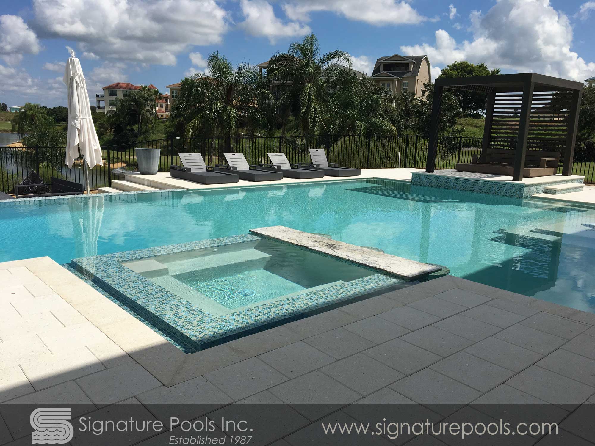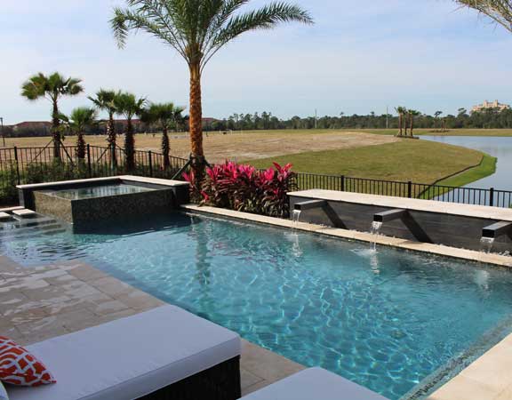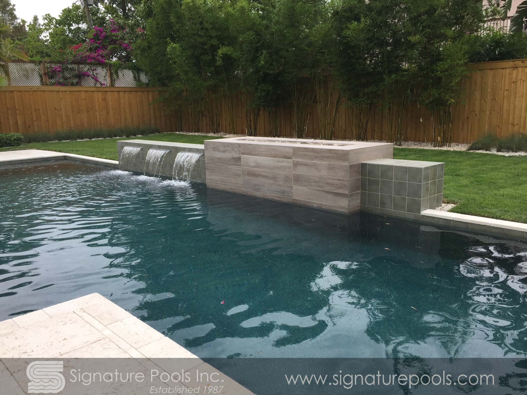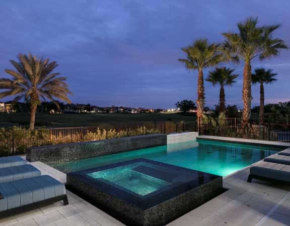 Linear Pool Design with Total Tile with Overflow Spa