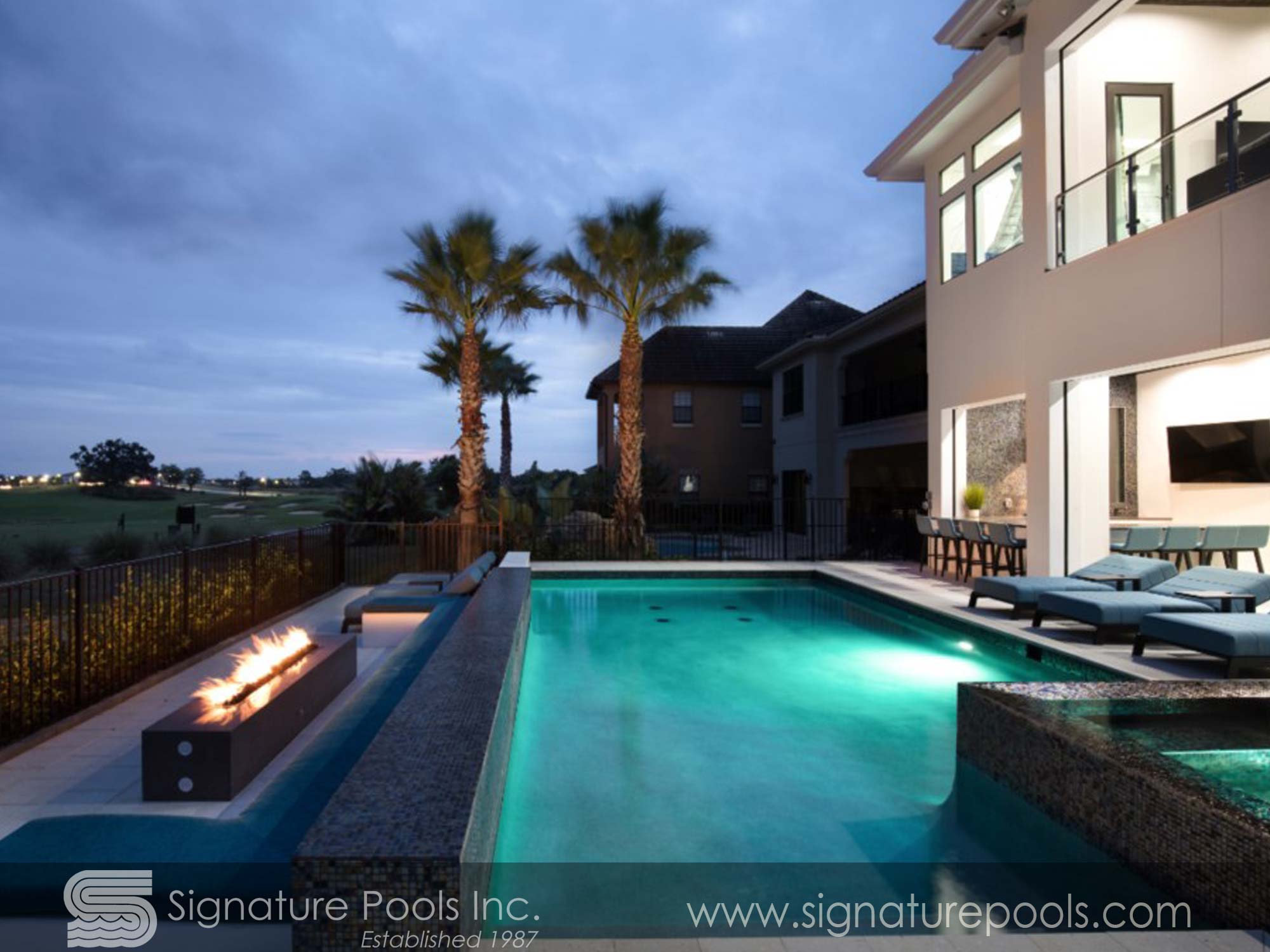 Linear Pool Design with Fire Spa