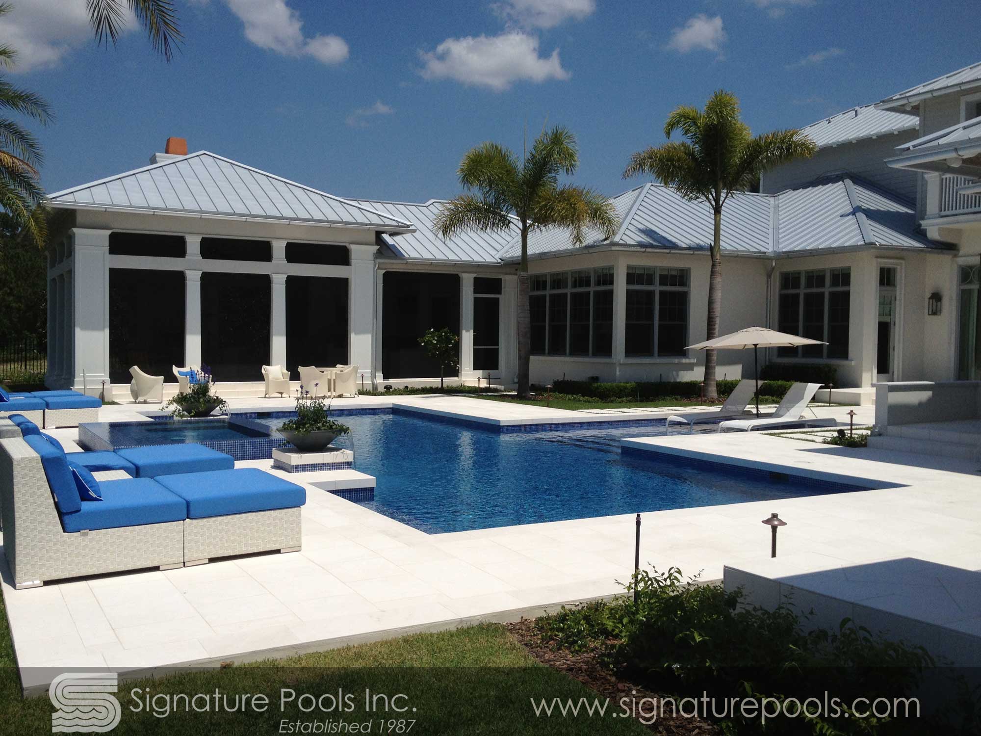 Linear Pool Design with Swimup Spa Sunken Seating