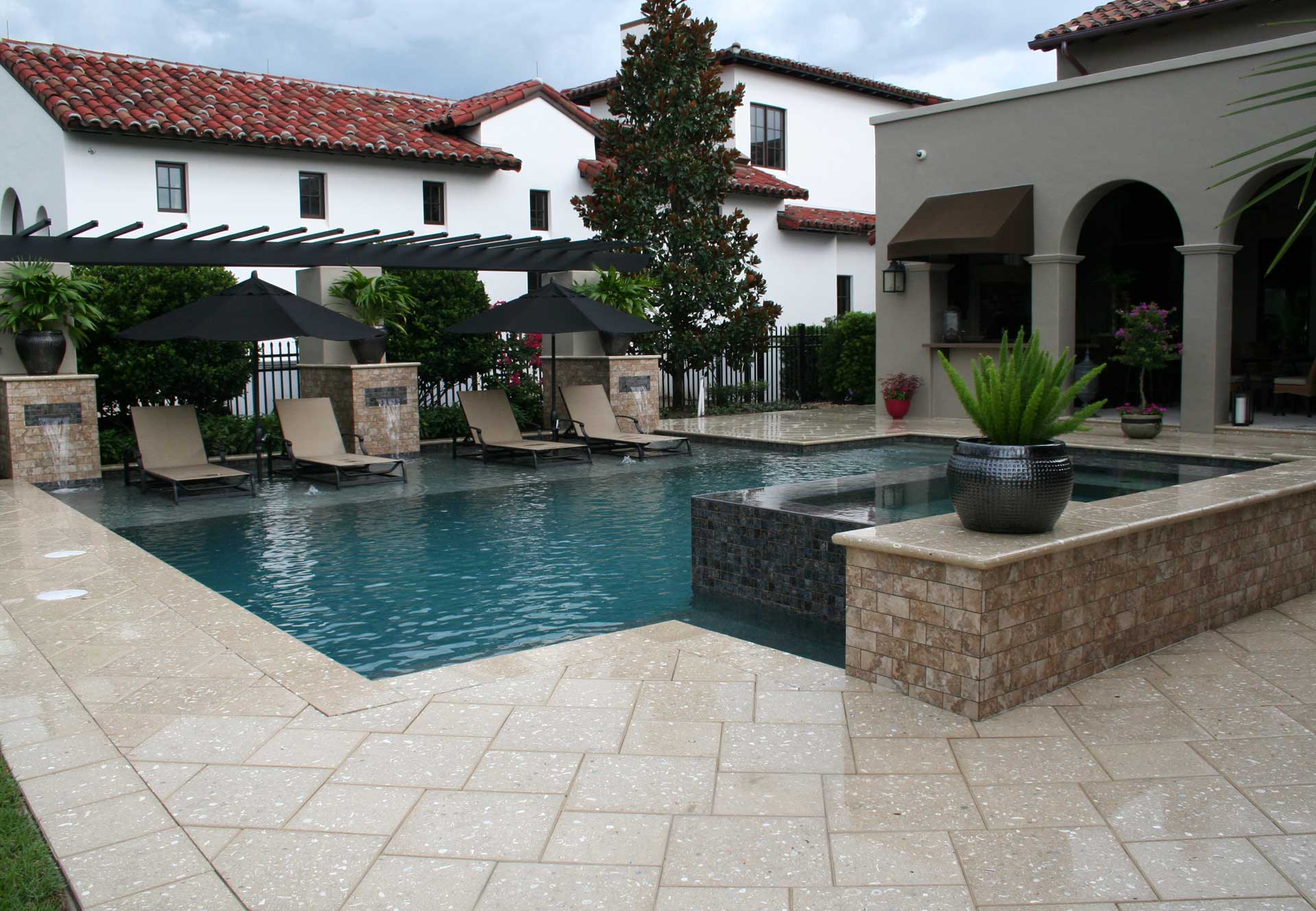 Linear Pool Design with Swimup Bar Water Features